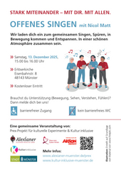 Wir laden dich ein zum gemeinsamen Singen, Spüren, in Bewegung kommen und Entspannen. In einer schönen Atmosphäre zusammen sein.