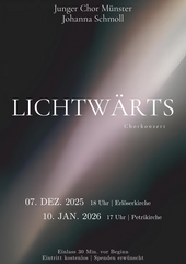 In diesem Chorkonzert führen wir Sie mit Stücken von u. A. Aurora, Grell, Bertholdy und Phil Collins durch die Dunkelheit. Mit Klängen aus Klassik und Pop gehen wir gemeinsam mit Ihnen lichtwärts.