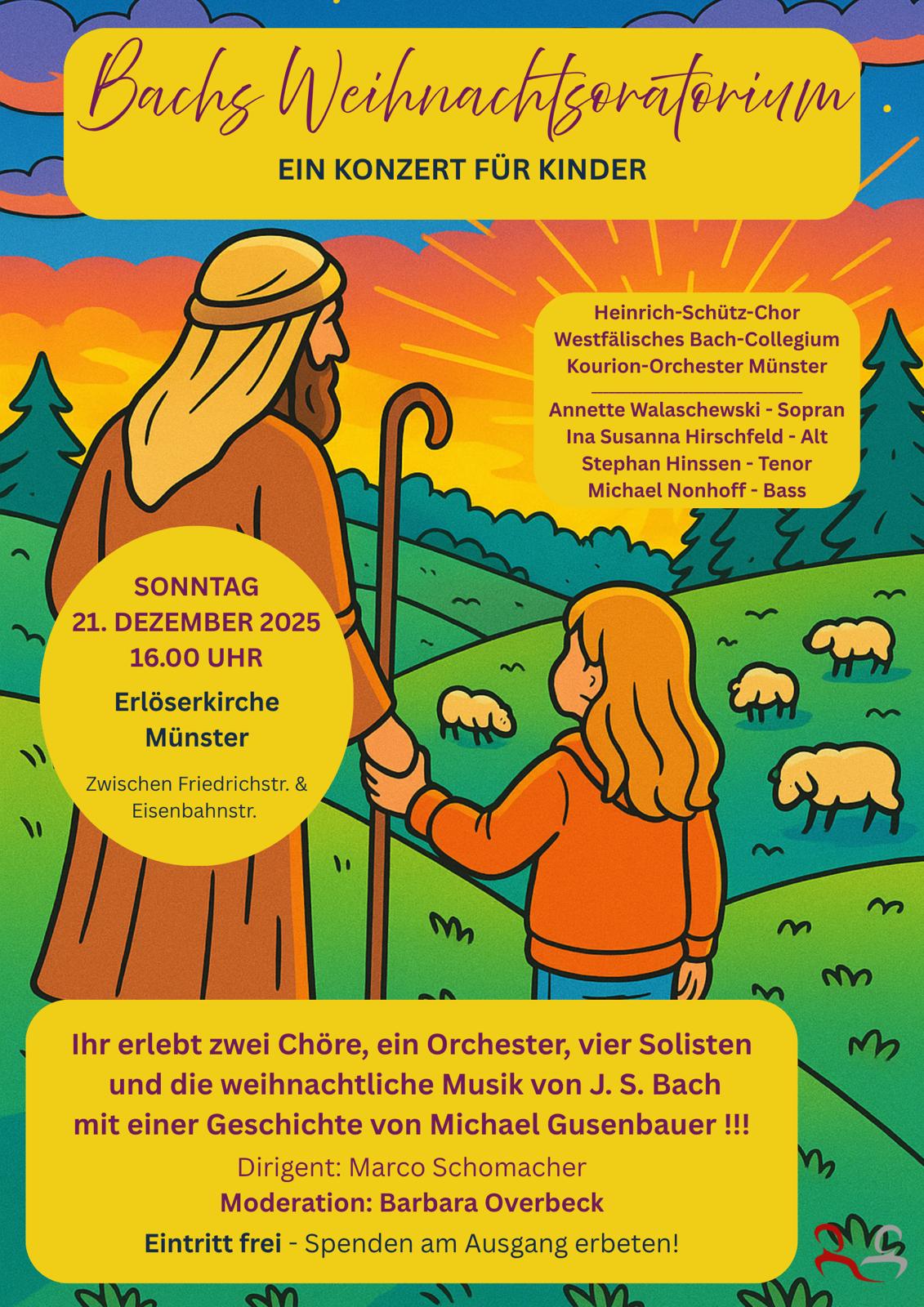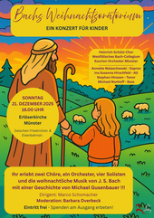 Ihr erlebt 2 Chöre, 1 Orchester, 4 Solisten und die weihnachtliche Musik von J.S. Bach mit einer Geschichte von Michael Gusenbauer.
